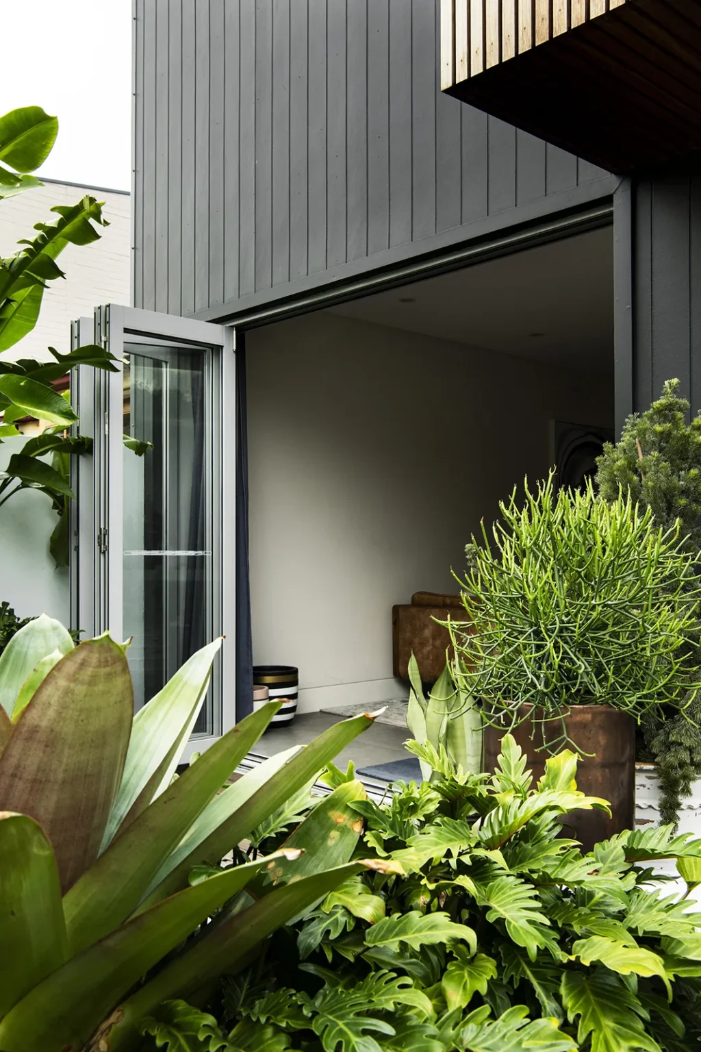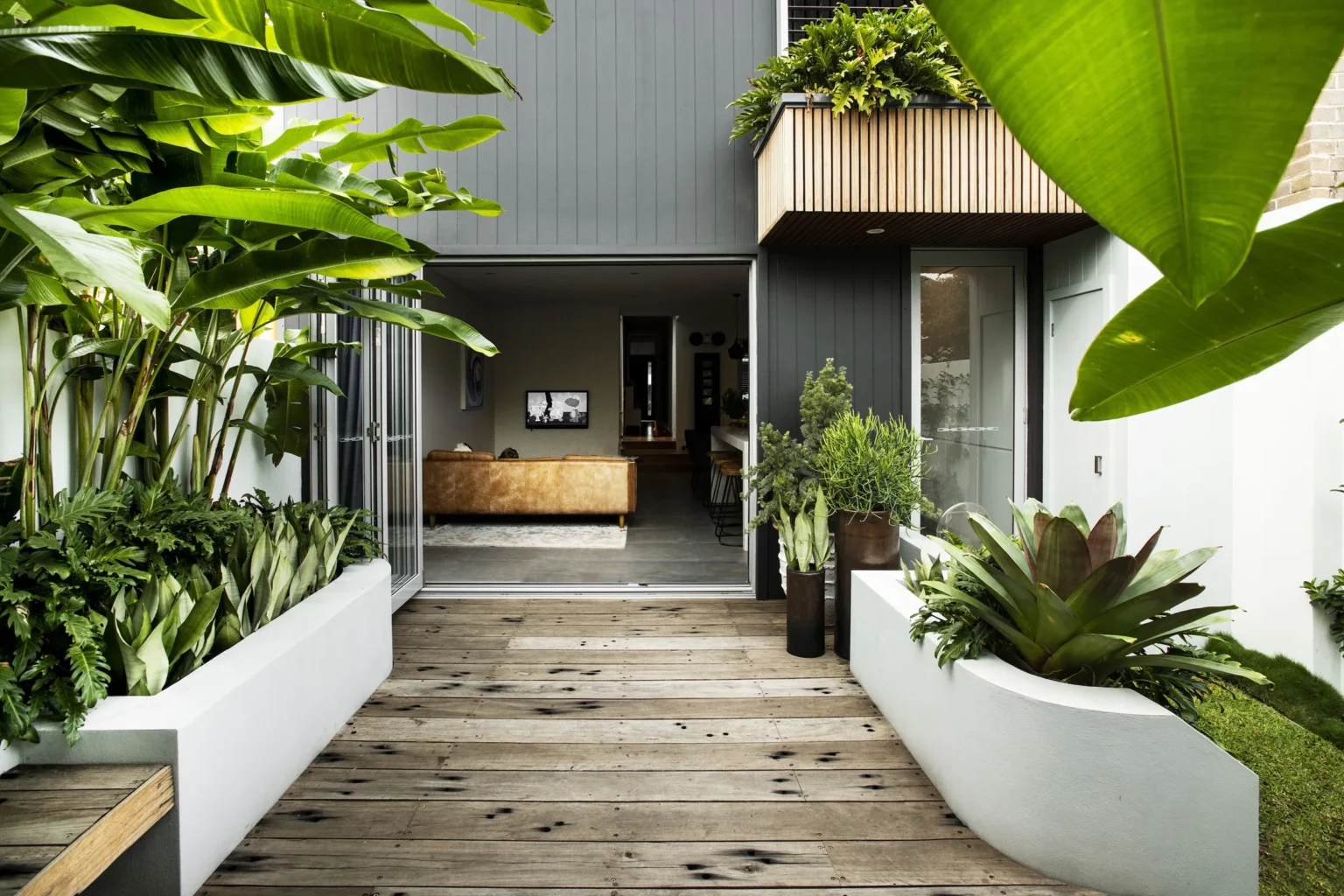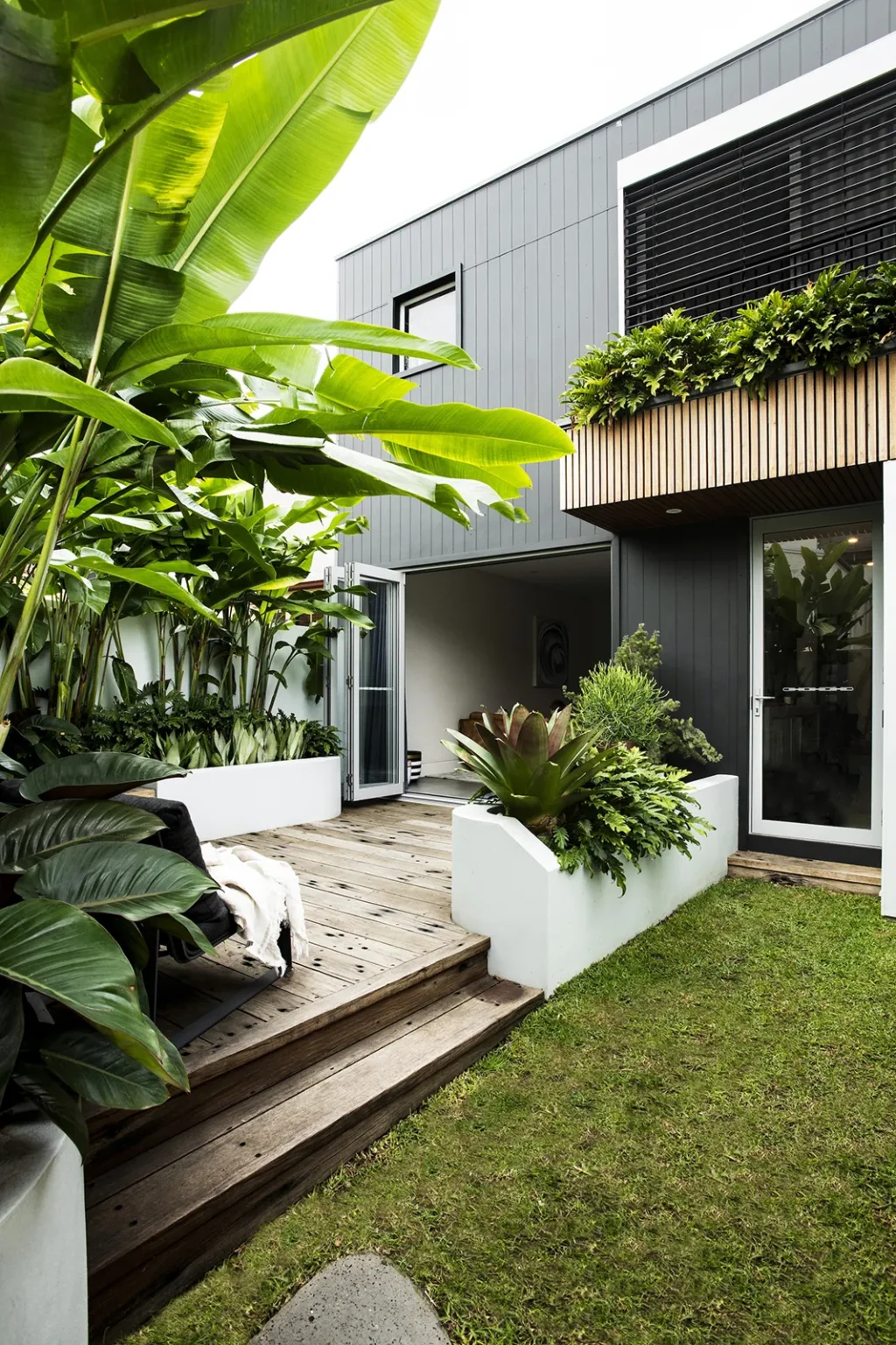 With limited space to work with, this design is a perfect example of maximizing every inch to meet the needs of an active family. An outdoor entertaining area flows seamlessly from the indoors, creating a cohesive space for both relaxation and gatherings. A dedicated lawn area provides plenty of room for the family’s energetic dog, while a quieter corner offers a peaceful retreat for moments of calm. Thoughtful planning ensures that all aspects of the family’s lifestyle are catered to, making the most of the available space.