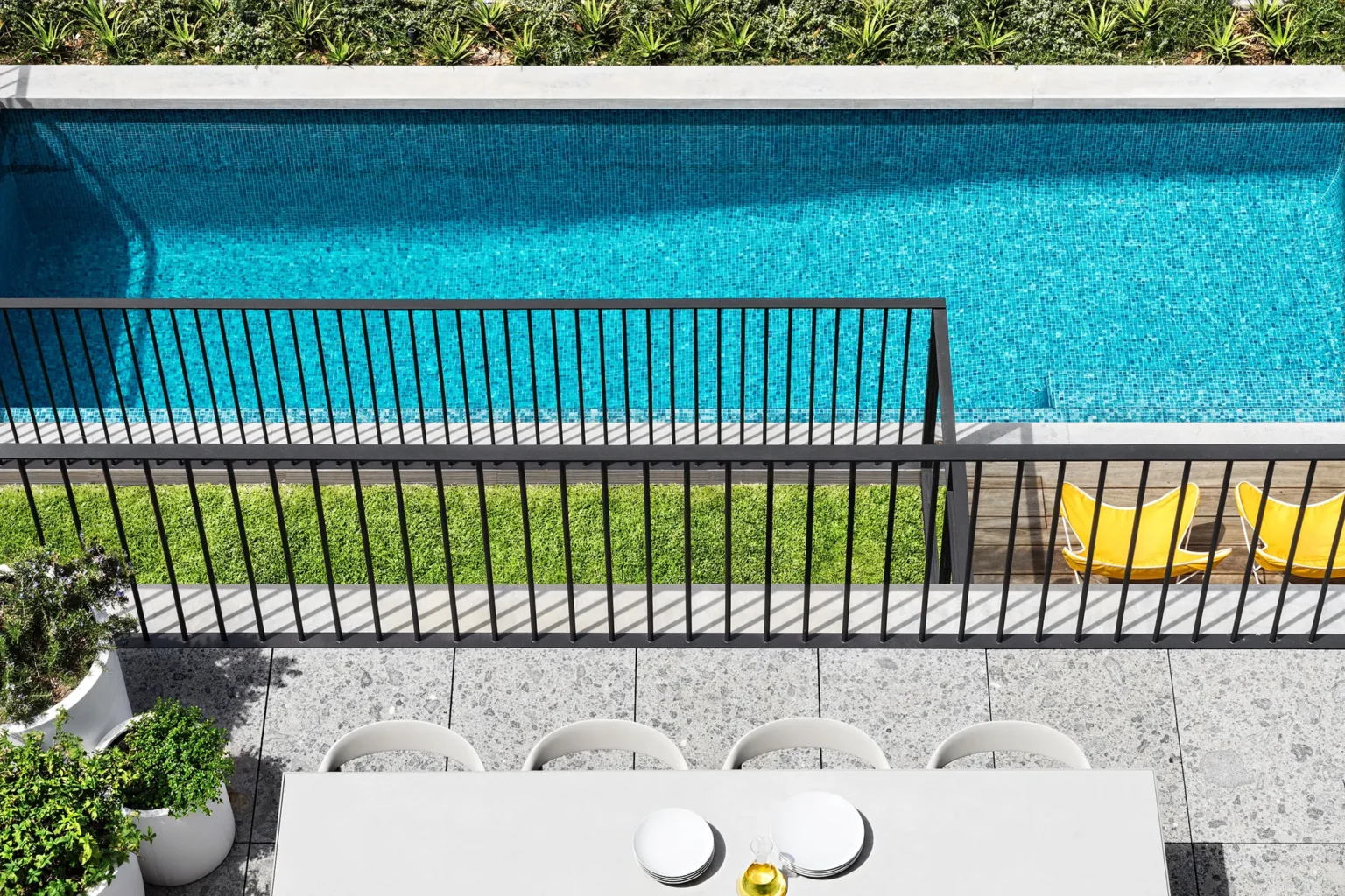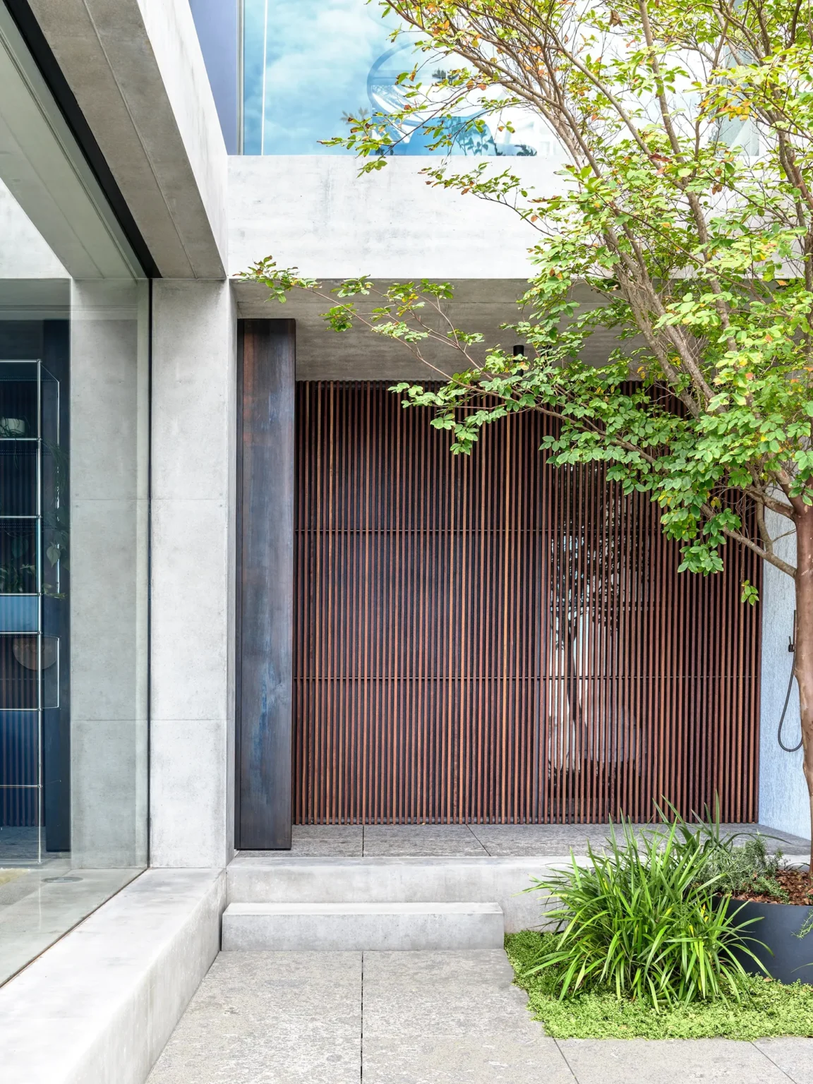 Established trees were carefully craned in to ensure this cliffside home felt grounded and seamlessly integrated into its site. The contemporary architecture’s clean lines and open spaces were complemented by a thoughtful landscape design that enhanced the connection between the home and its natural surroundings. The split-level layout made plant placement and selection crucial, ensuring high-impact greenery without obstructing the breathtaking ocean views. The landscape serves to both highlight and balance the home’s modern design, creating a harmonious flow between architecture and nature.