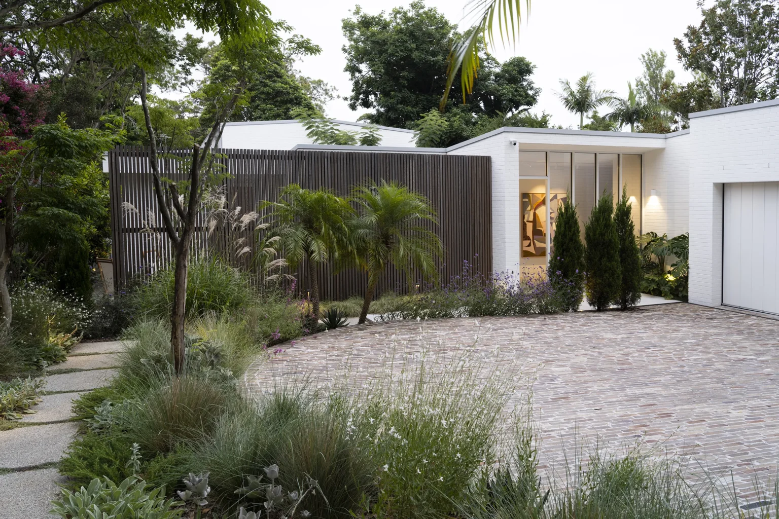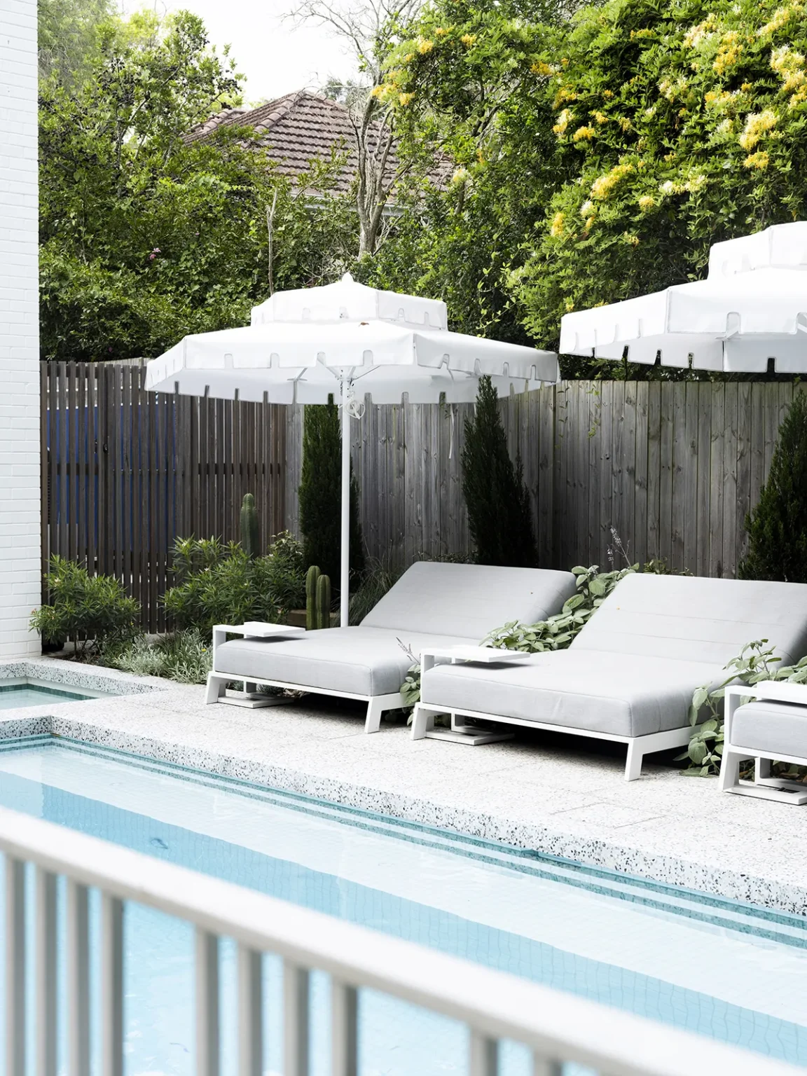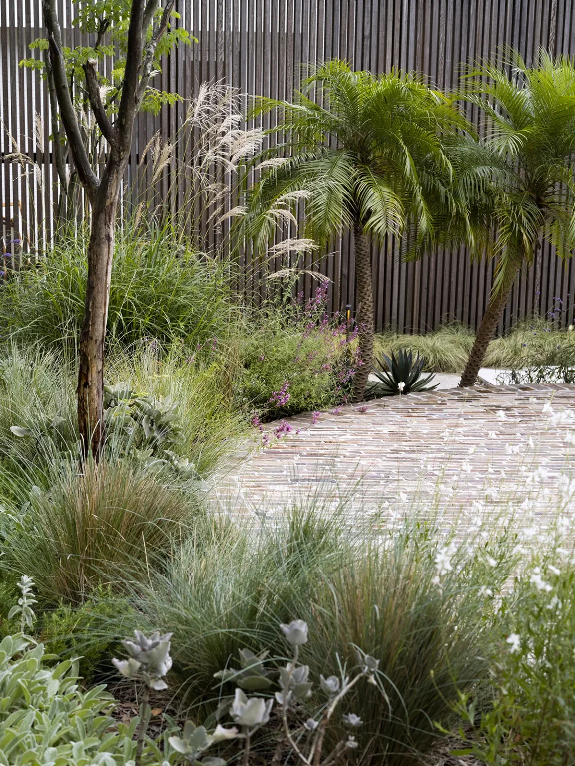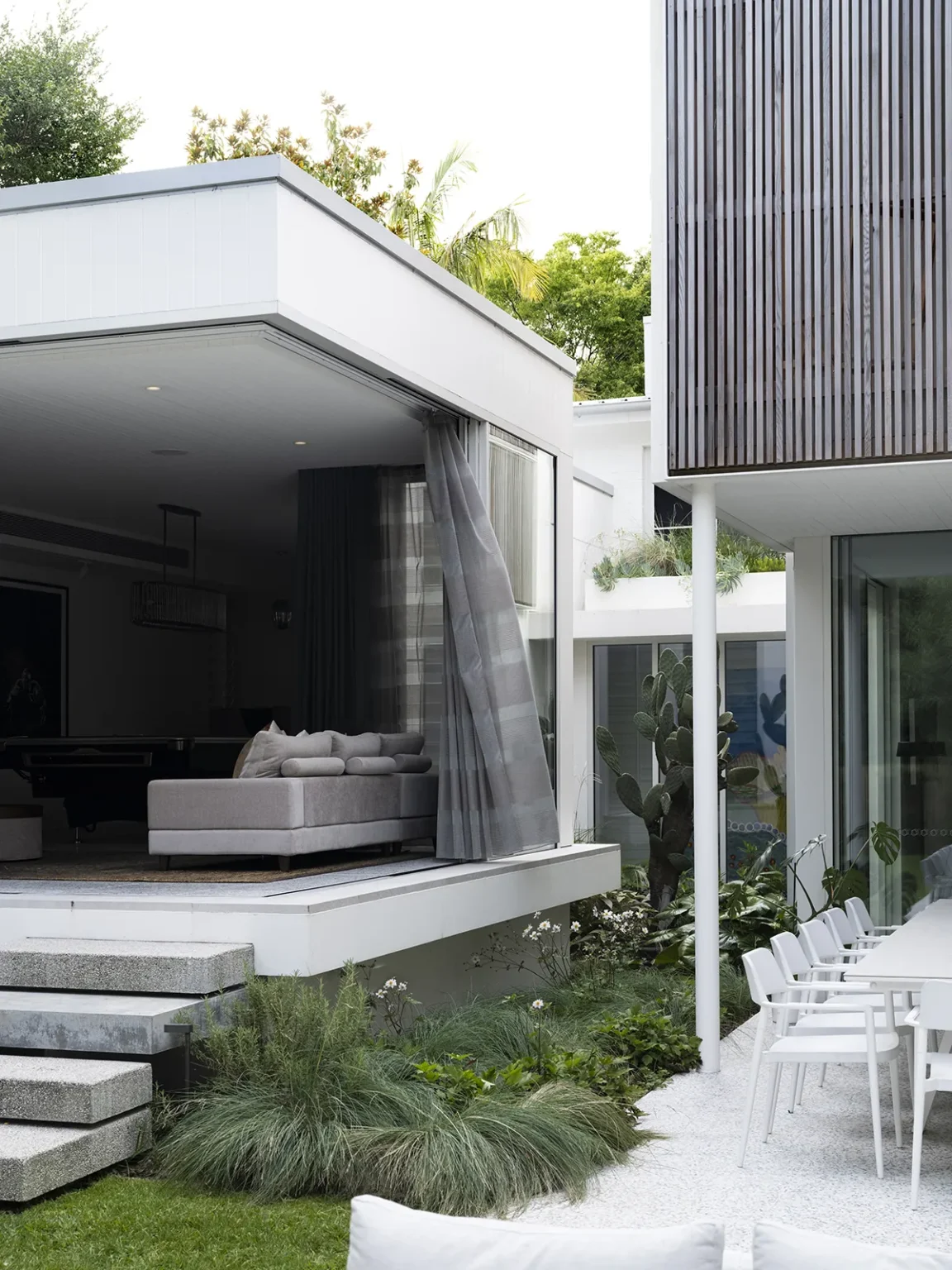 An entertainer’s dream, this home was designed with spaces that offer generous flow and scale, creating a seamless connection between the indoors and outdoors. The owners sought to balance the soft and hard landscaping elements, ensuring both functionality and aesthetic harmony. The diverse plant palette softens the hard landscaping with a mix of textures and foliage, creating a lush, inviting atmosphere. This thoughtful design creates an ideal space for entertaining while maintaining a natural flow and enhancing the overall experience of the home.