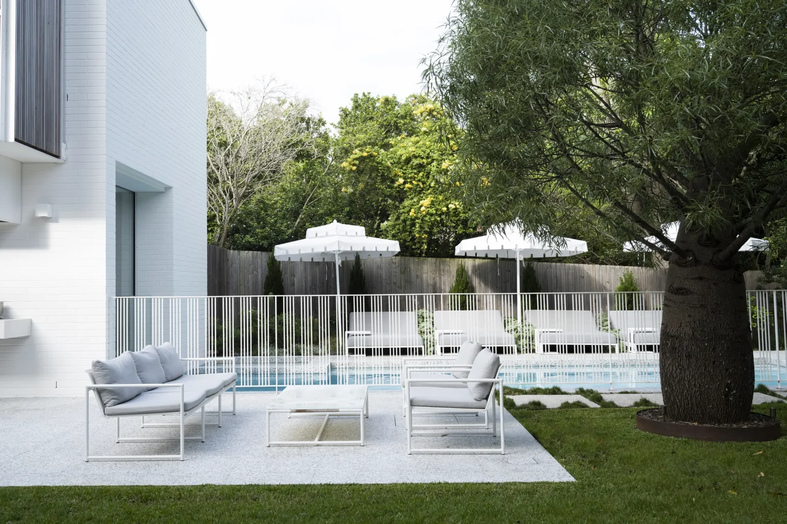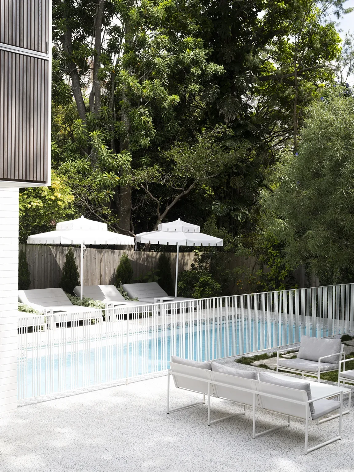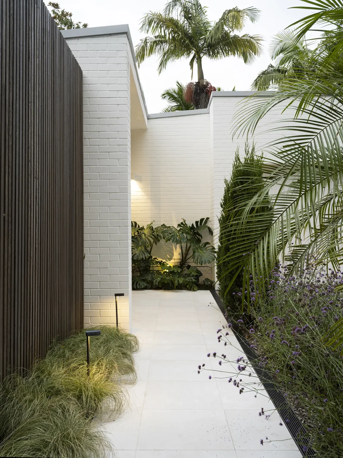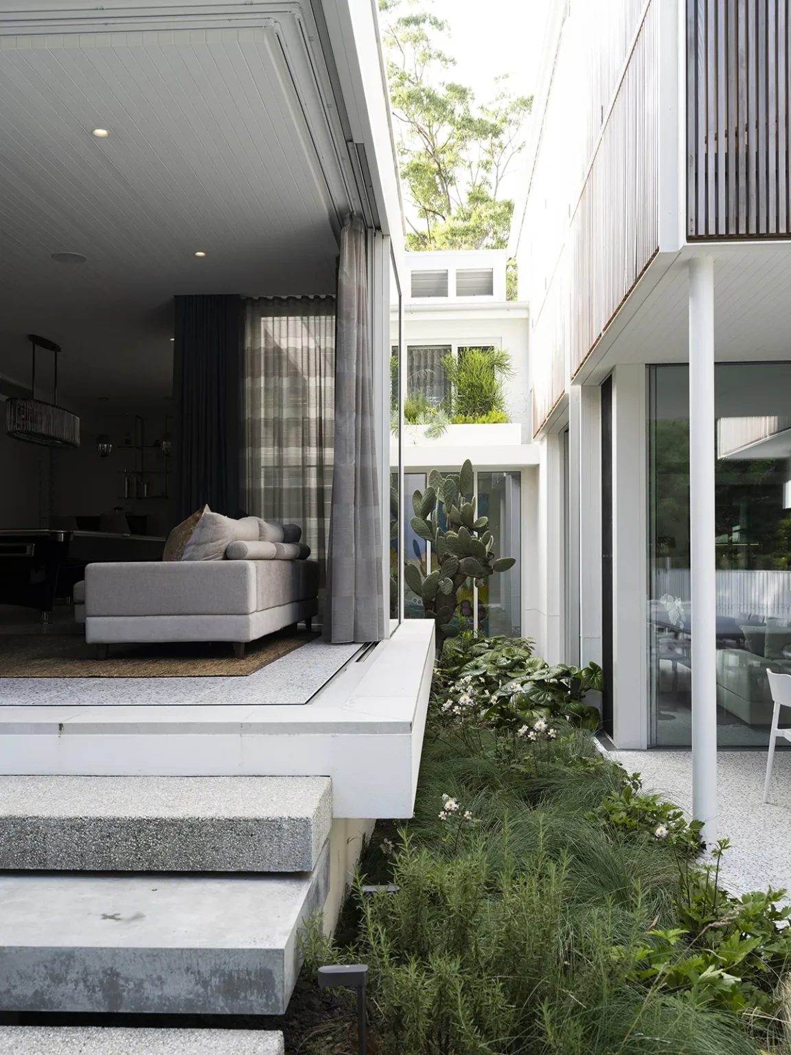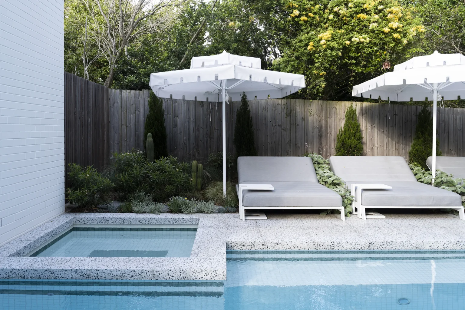 An entertainer’s dream, this home was designed with spaces that offer generous flow and scale, creating a seamless connection between the indoors and outdoors. The owners sought to balance the soft and hard landscaping elements, ensuring both functionality and aesthetic harmony. The diverse plant palette softens the hard landscaping with a mix of textures and foliage, creating a lush, inviting atmosphere. This thoughtful design creates an ideal space for entertaining while maintaining a natural flow and enhancing the overall experience of the home.