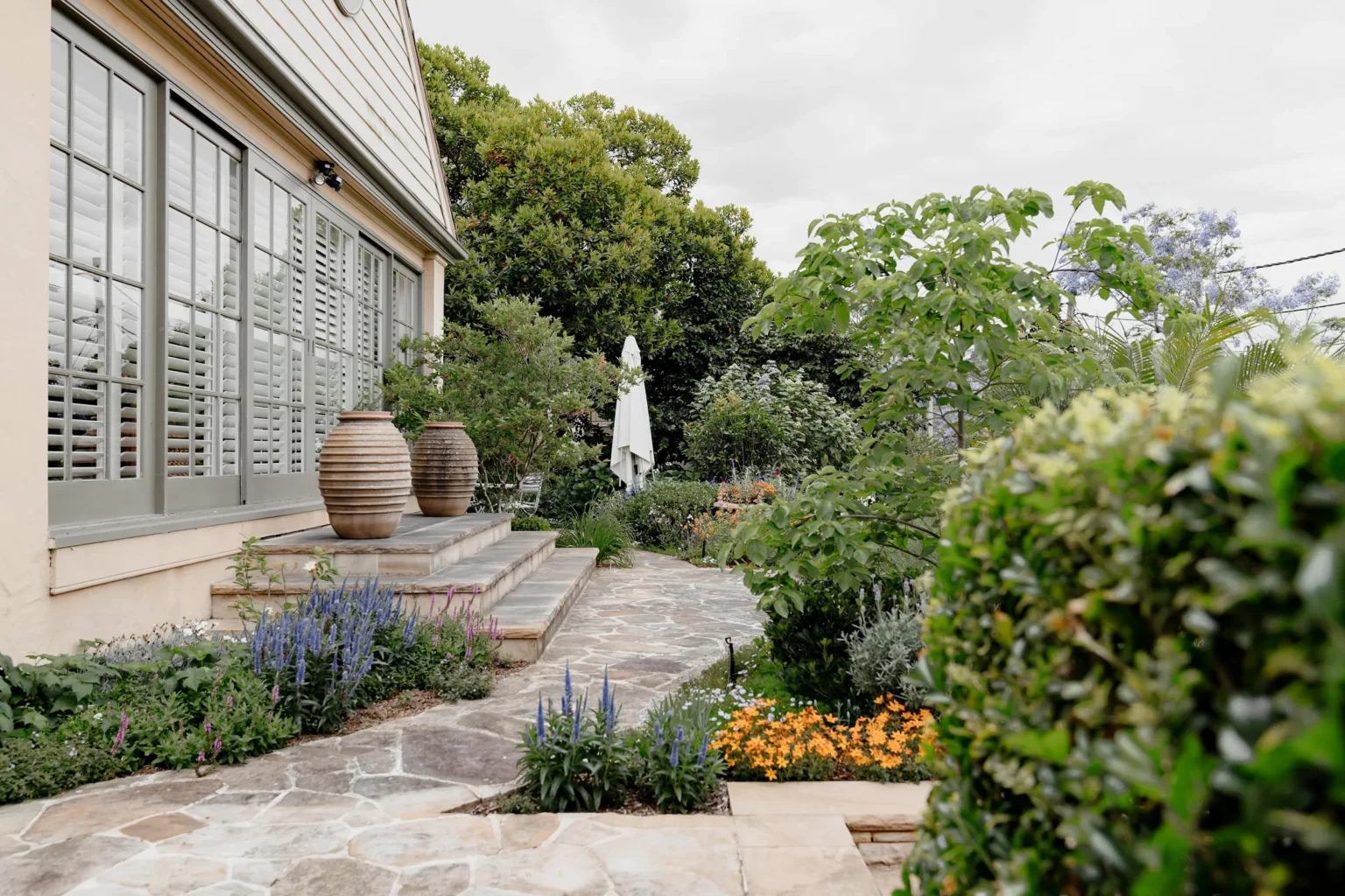The clients of this home, passionate gardeners with a deep love and understanding of plants, sought to create inviting outdoor living spaces within their garden. The plant selection is both diverse and layered, providing year-round seasonal interest and ensuring the garden evolves with the changing seasons. Each area within the garden is thoughtfully designed to enhance the homeowners’ connection with nature, creating a serene and dynamic environment where they can enjoy and engage with the plants they cherish. The garden serves as both a retreat and an ever-changing landscape for their gardening passion to flourish.