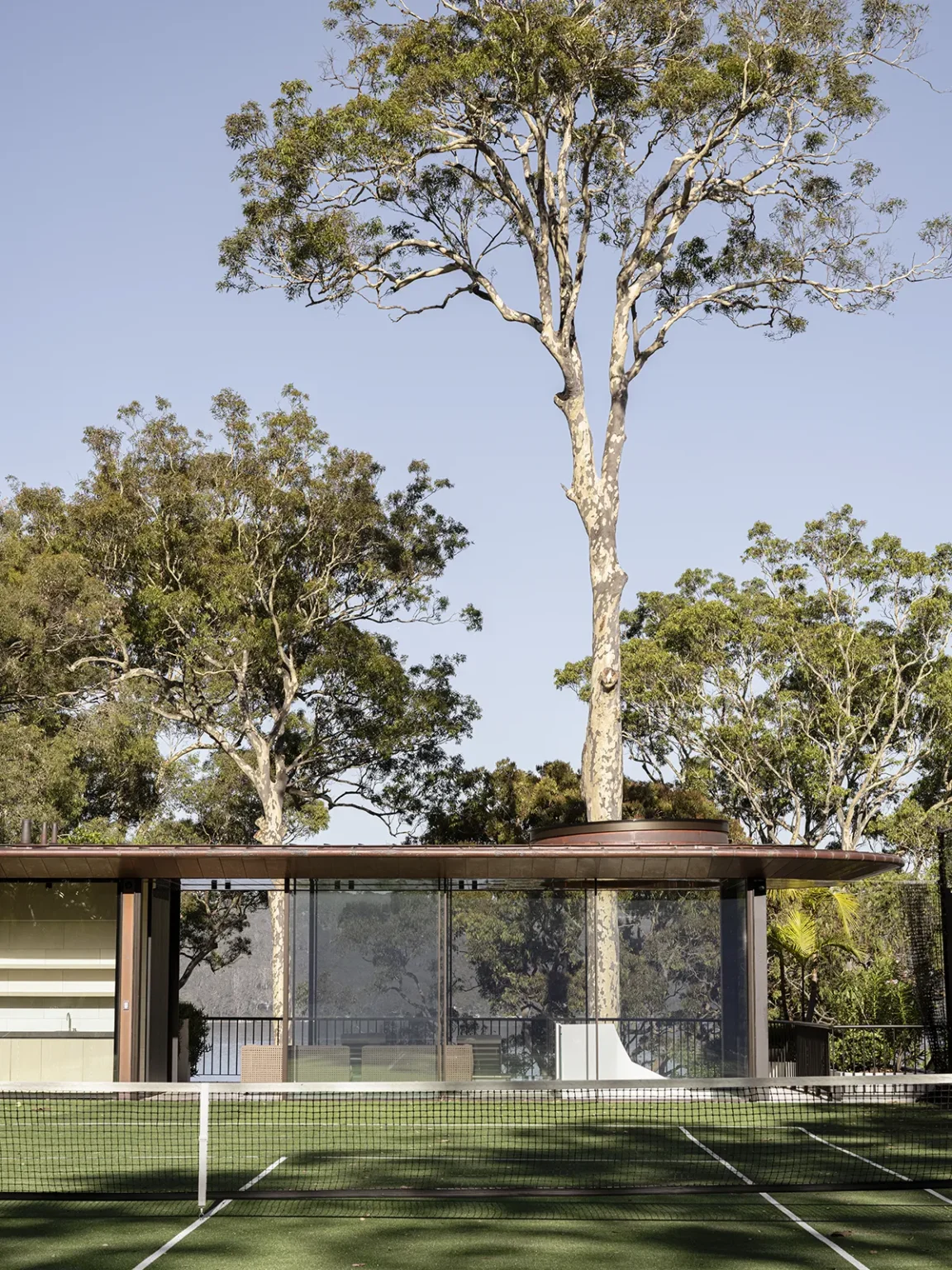 Nelson Thomas were engaged to create a strong sense of arrival and seamlessly integrate the newly constructed Tennis Pavilion into the surrounding landscape design. Set on a generous double block, the home is positioned at the lower end of the property, with a long, sloping driveway guiding visitors down through the site.